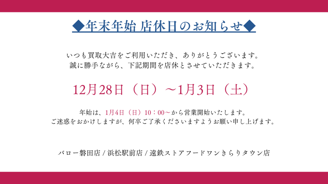 【年末のご挨拶】皆さまへ感謝を込めて。2025年もありがとうございました! 買取大吉 浜松駅前店