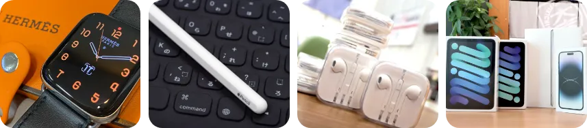 箱やケーブル、充電器など、可能な限り付属品をお持ちください。付属品が不足している場合、モデルによっては買取金額が減額になる可能性がございます。
